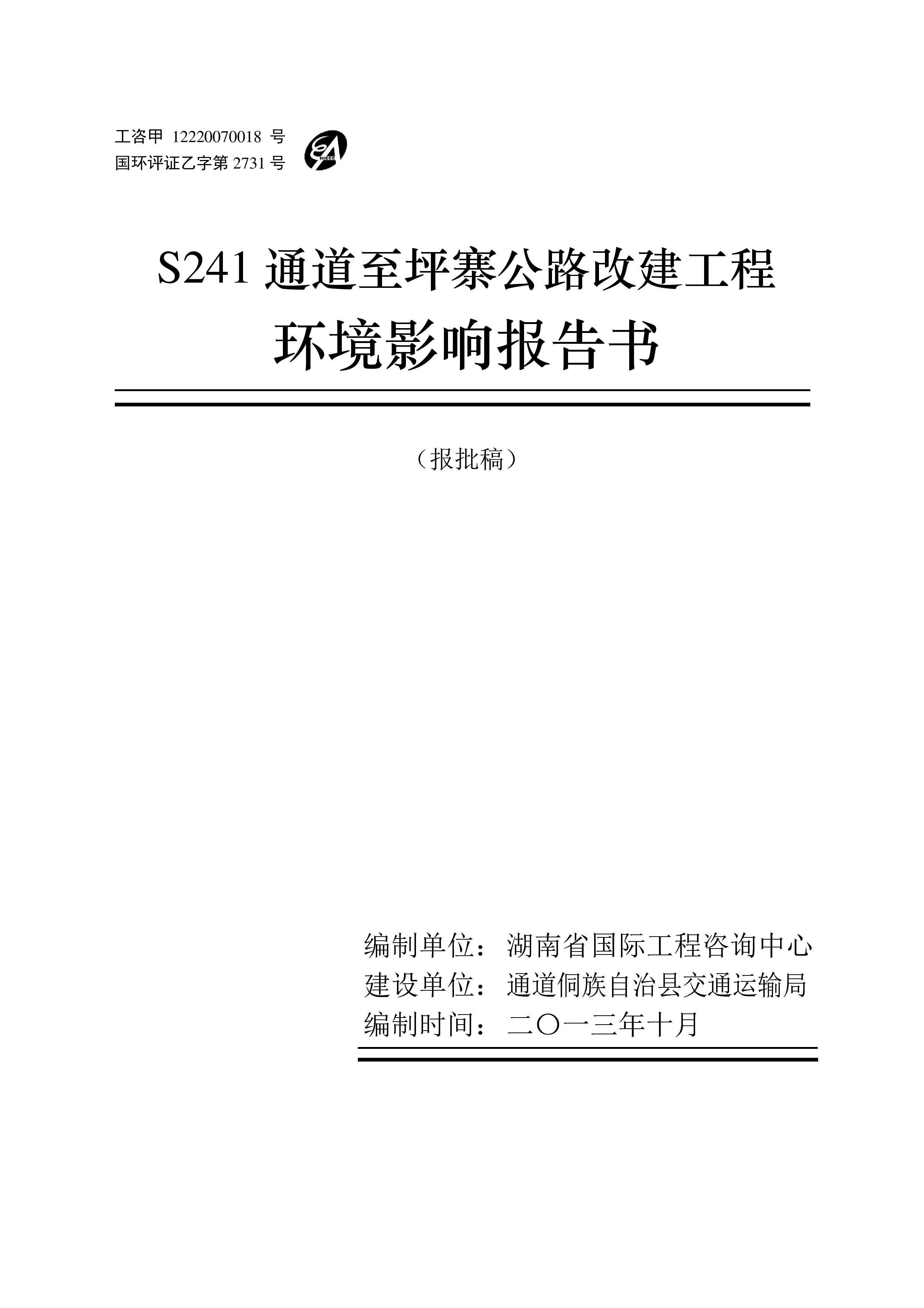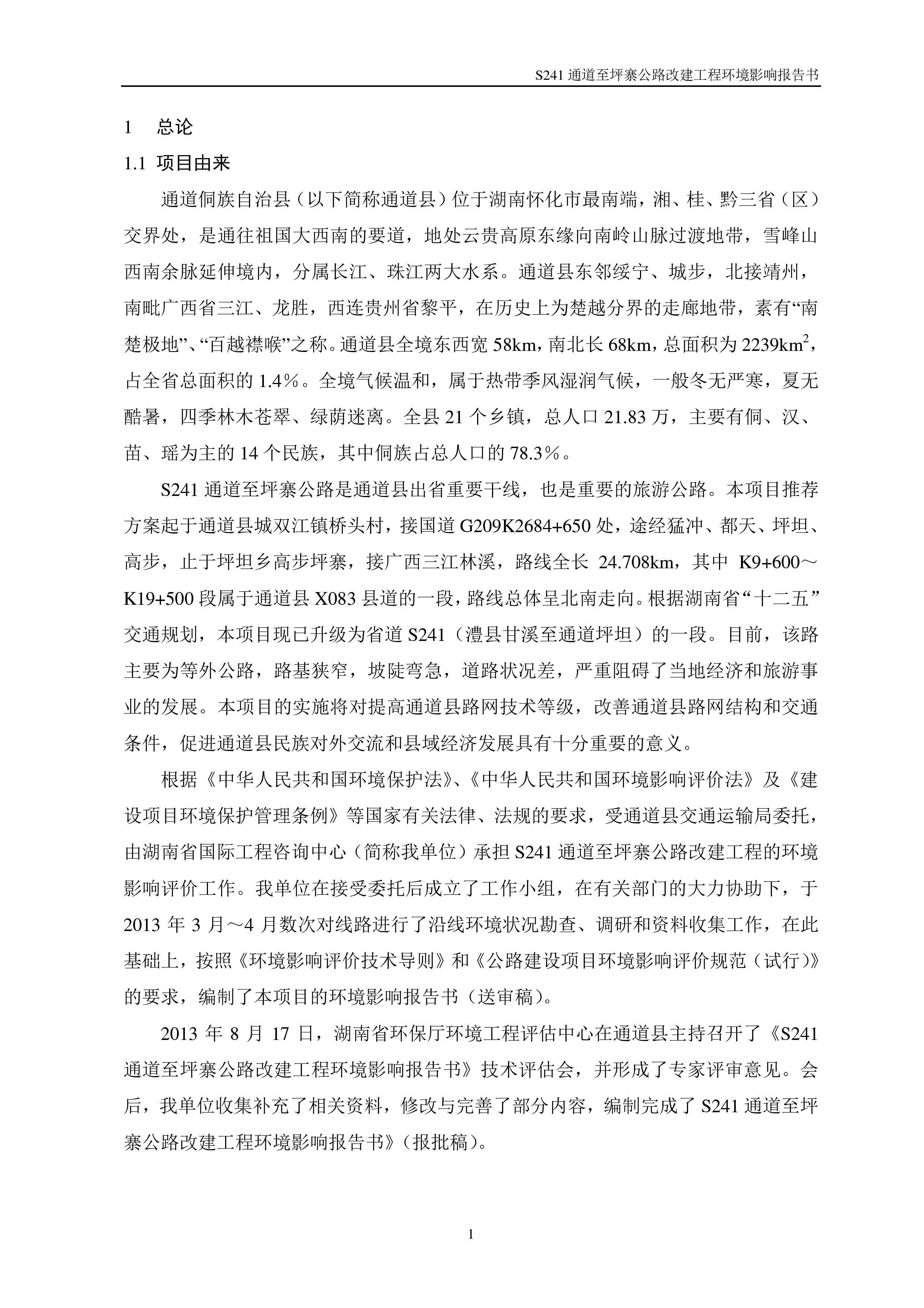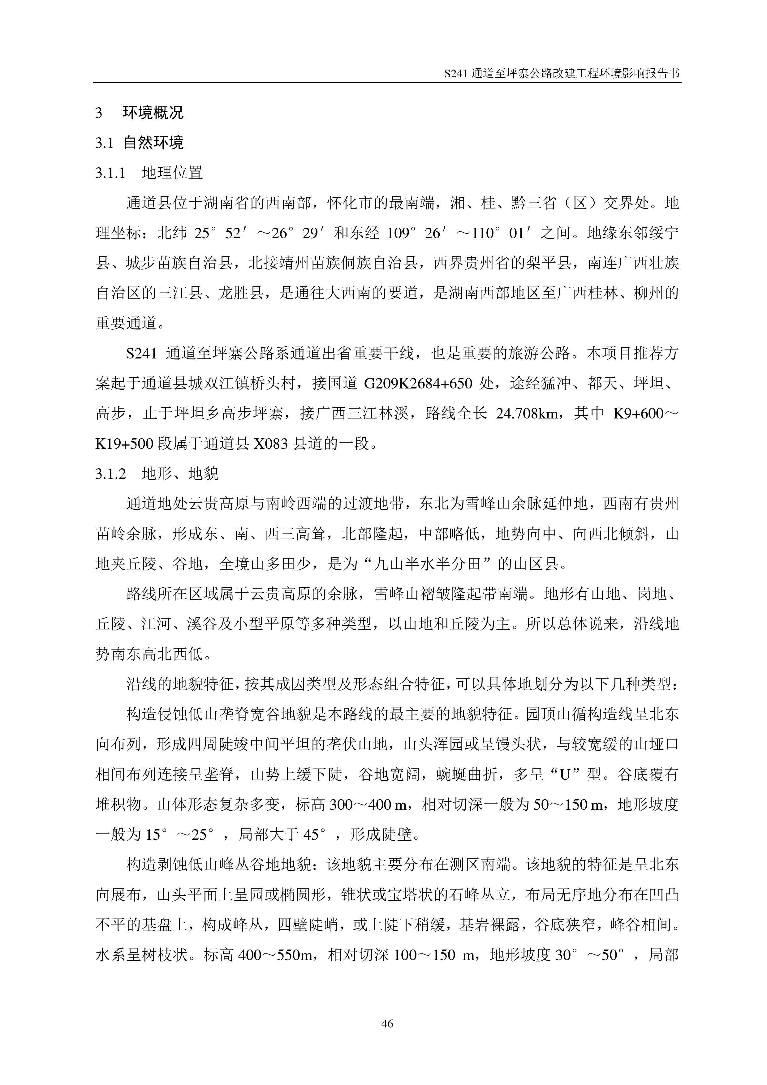 通道至坪寨公路改建工程環(huán)境影響報(bào)告書(shū)(報(bào)批稿)