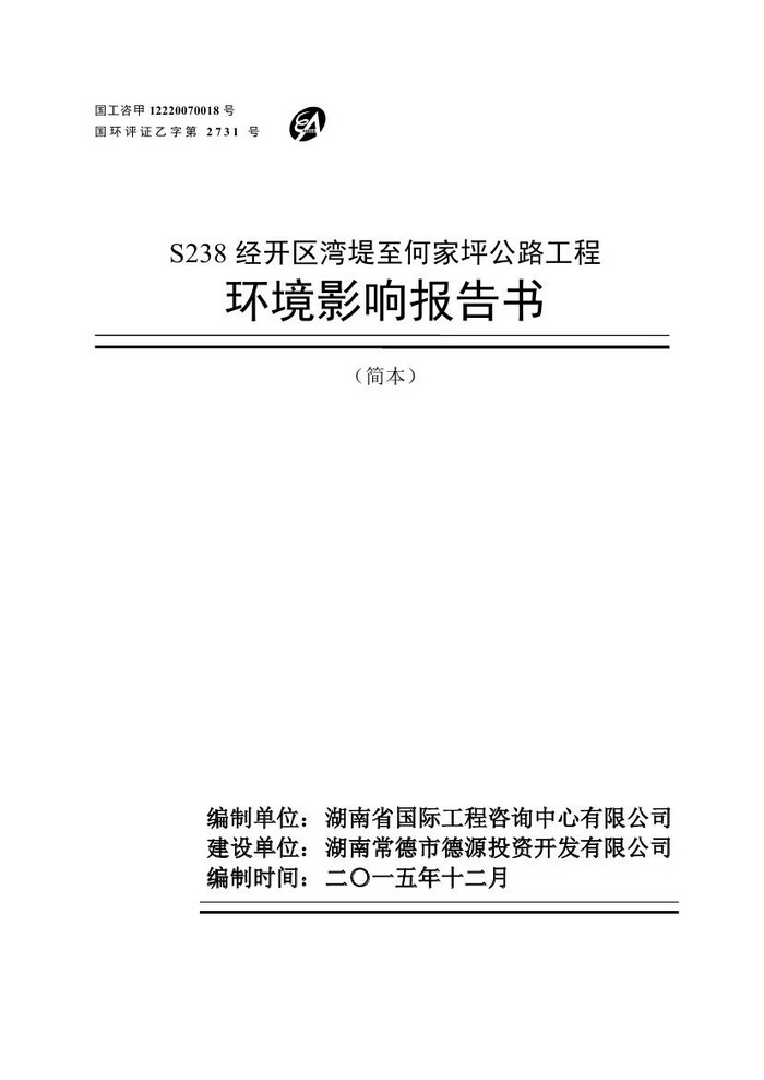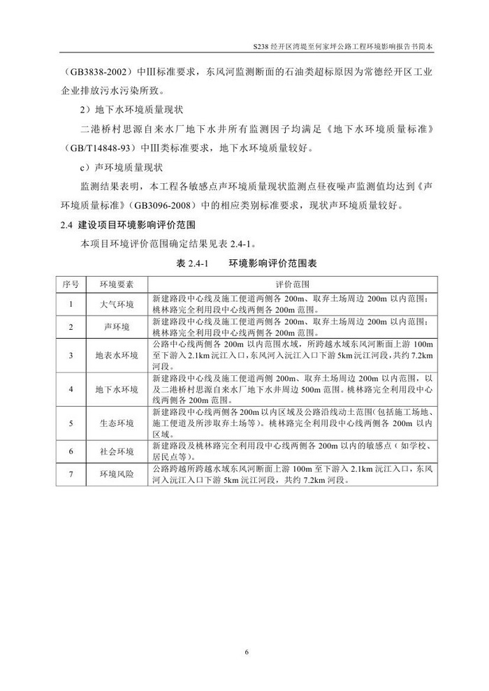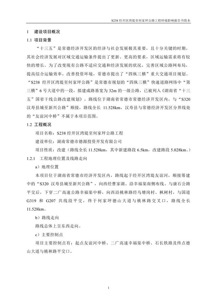 S238經(jīng)開區(qū)灣堤至何家坪公路工程環(huán)境影響報告書簡本