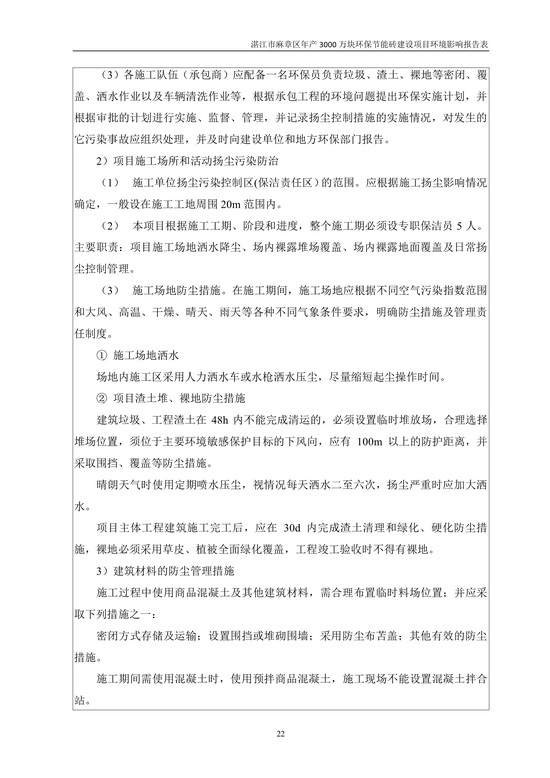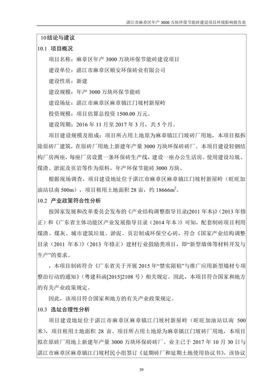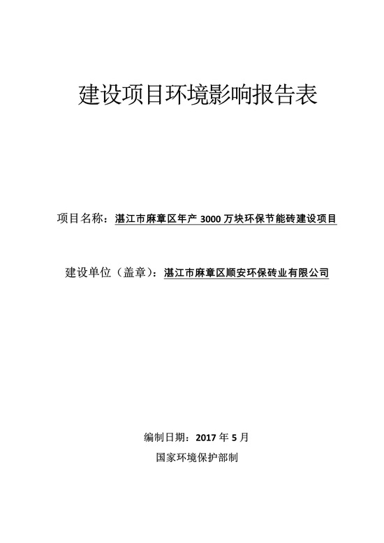 湛江市麻章區(qū)年產(chǎn)3000萬塊環(huán)保節(jié)能磚建設(shè)項目環(huán)境影響報告表公示