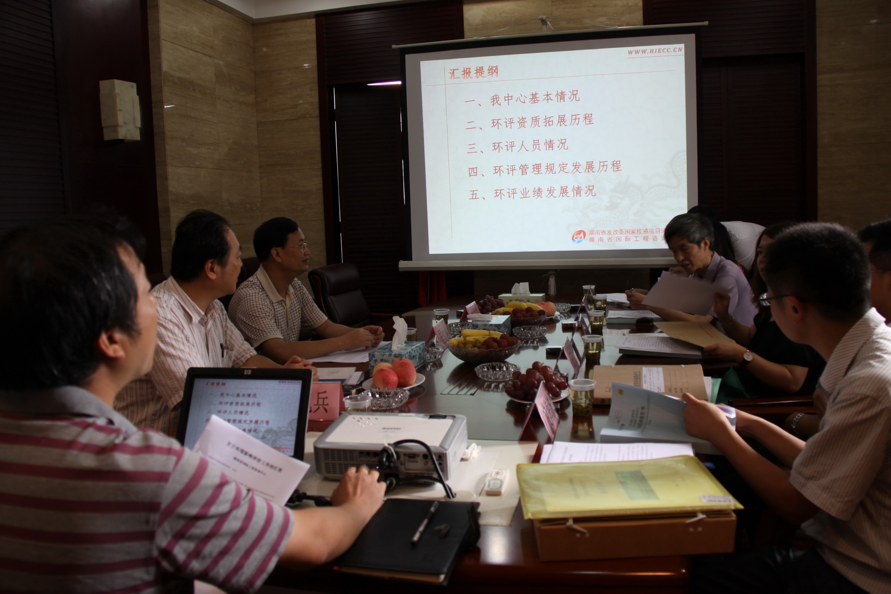 2012年7月19日,國(guó)家環(huán)保部專(zhuān)項(xiàng)執(zhí)法檢查組閆如松一行對(duì)中心的環(huán)評(píng)工作開(kāi)展了現(xiàn)場(chǎng)專(zhuān)項(xiàng)執(zhí)法檢查。檢查組在中心二會(huì)議室聽(tīng)取了中心的環(huán)評(píng)工作匯報(bào)。省發(fā)改委黨組成員、中心黨委書(shū)記、主任匡竹述,中心黨委委員、副主任劉永安出席。