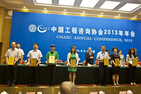 為了表彰和獎(jiǎng)勵(lì)在我國(guó)工程咨詢業(yè)務(wù)中做出突出貢獻(xiàn)的集體和個(gè)人,推動(dòng)全國(guó)工程咨詢業(yè)不斷提高服務(wù)質(zhì)量和水平,更好地為經(jīng)濟(jì)建設(shè)服務(wù),年會(huì)還舉辦了2012年度全國(guó)優(yōu)秀工程咨詢成果頒獎(jiǎng)儀式。我中心編制的《湖南省“兩型社會(huì)”建設(shè)重點(diǎn)課題——長(zhǎng)株潭城市群供水安全提質(zhì)方案專題研究報(bào)告 》獲得全國(guó)優(yōu)秀咨詢成果二等獎(jiǎng),并作為推選的30個(gè)獲獎(jiǎng)代表之一上主席臺(tái)領(lǐng)獎(jiǎng)。
