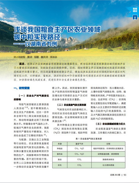 糧食主產(chǎn)區(qū)承擔著國家糧食安全的重要責任,然而在保障了國家糧食安全的同時也產(chǎn)生了大量的農(nóng)業(yè)碳排放,導致溫室效應持續(xù)加強。因此,推動糧食主產(chǎn)區(qū)減排固碳對我國農(nóng)業(yè)領(lǐng)域?qū)崿F(xiàn)碳中和意義重大。作為我國重要的糧食主產(chǎn)區(qū),湖南近年來在農(nóng)業(yè)農(nóng)村領(lǐng)域積極開展應對氣候變化工作,從種植業(yè)、畜牧業(yè)、漁業(yè)和農(nóng)機四個方面探索協(xié)同推進農(nóng)業(yè)農(nóng)村減排固碳的實施路徑,加快推動綠色低碳發(fā)展,促進經(jīng)濟社會發(fā)展全面綠色轉(zhuǎn)型。